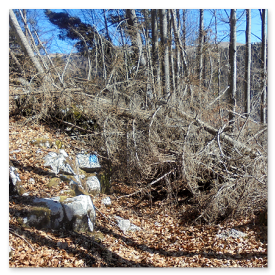 verso Colli Vecchi, il sentiero non è transitabile essendo invaso da alberi caduti.